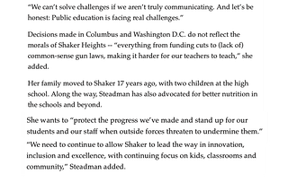 Jenny Steadman is a hardworking, passionate, and fair person who wants the best for everyone involved in the Shaker Heights School District.